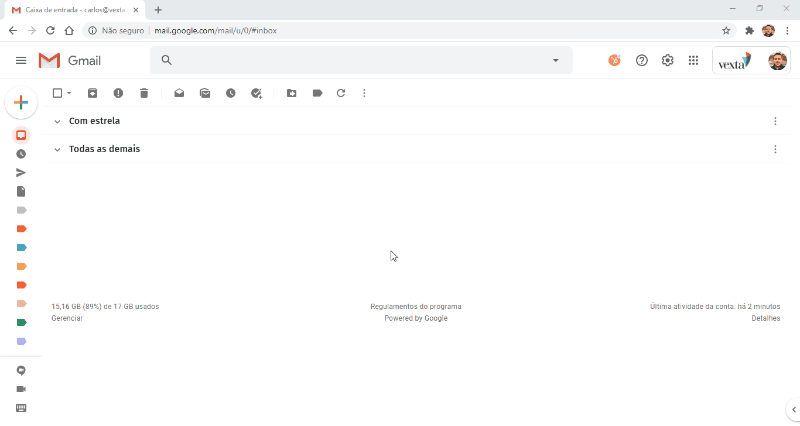 2. Dentro do gmail, clique no ícone de configurações no topo da tela à direita (ícone da engrenagem), e depois na opção Ver todas as configurações.