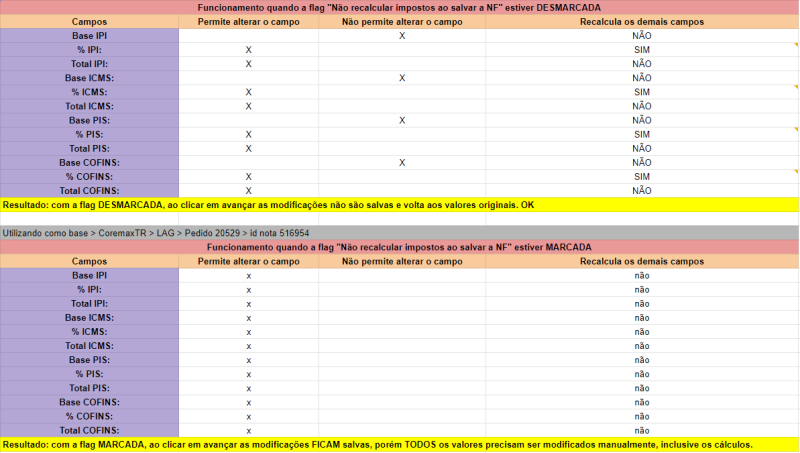 E quanto ao usa da flag "Não recalcular impostos ao salvar a NF", no cadastro da regra, o sistema se comportará da seguinte forma: