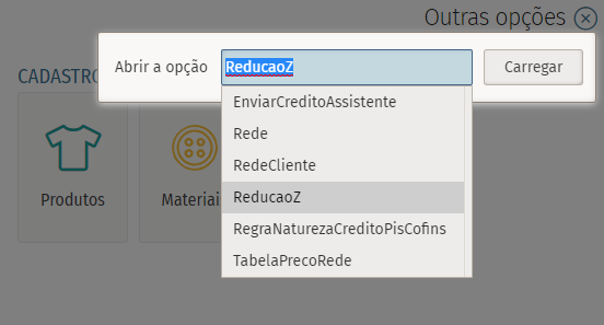 Acesse a tela ReducaoZ nas outras opções do sistema.