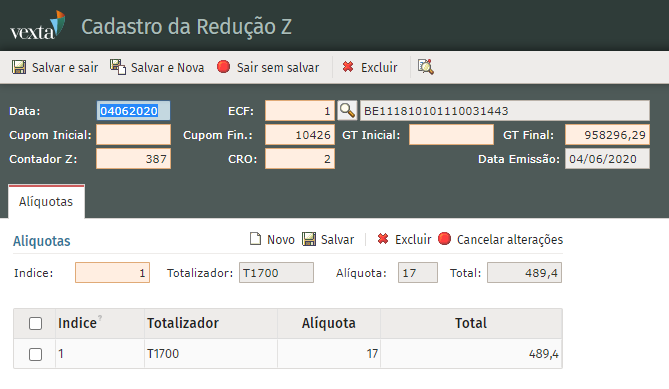 Todas as informações da tela, encontram-se disponíveis no extrato impresso da Redução Z, caso não exista o documento impresso, é possível obter através da opção “Espelho MFD” ou pelo software do fabricante da impressora ECF (Bematool 4 Pro, por exemplo no caso de impressoras fiscais Bematech).
