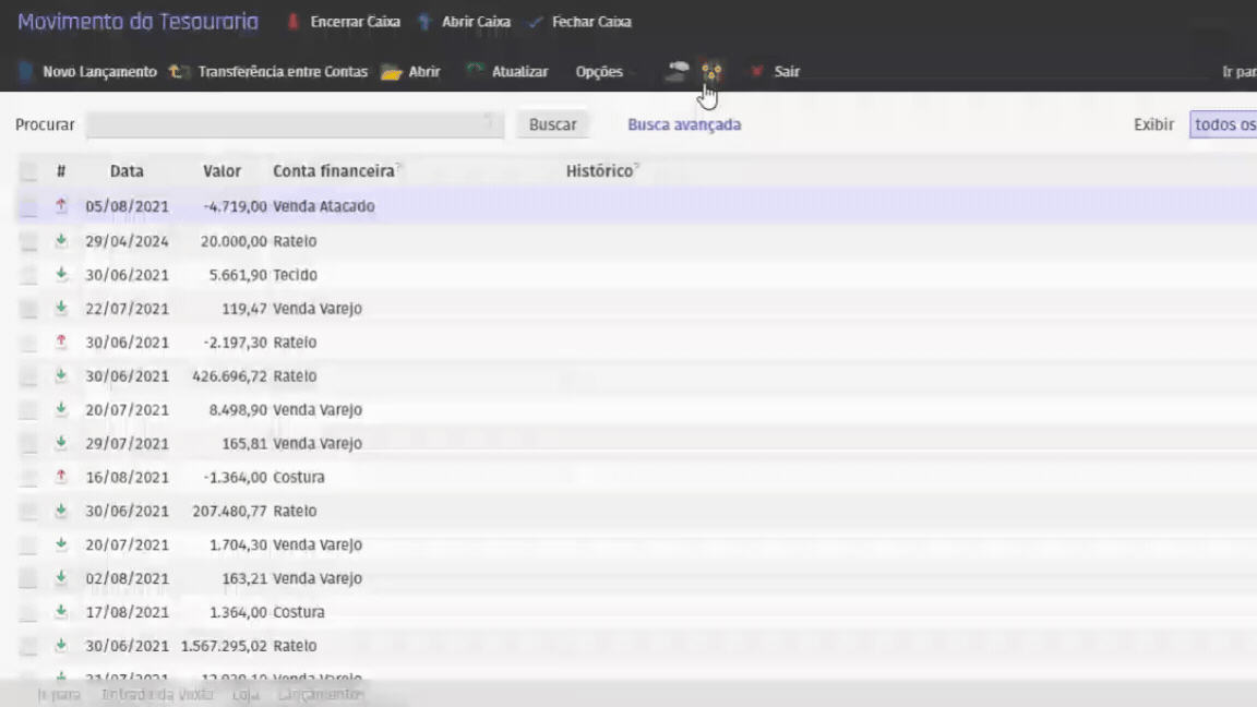 - Data Posterior ao Último Encerramento: O sistema buscará a data da última vez que o caixa foi fechado. Na próxima abertura do caixa, a data sugerida será o dia seguinte a essa data de encerramento.