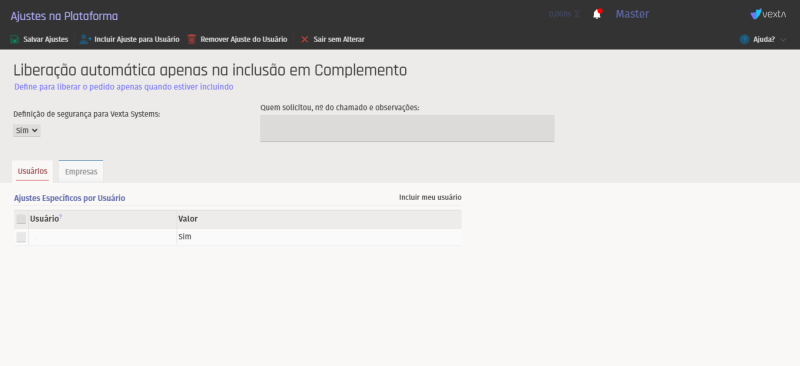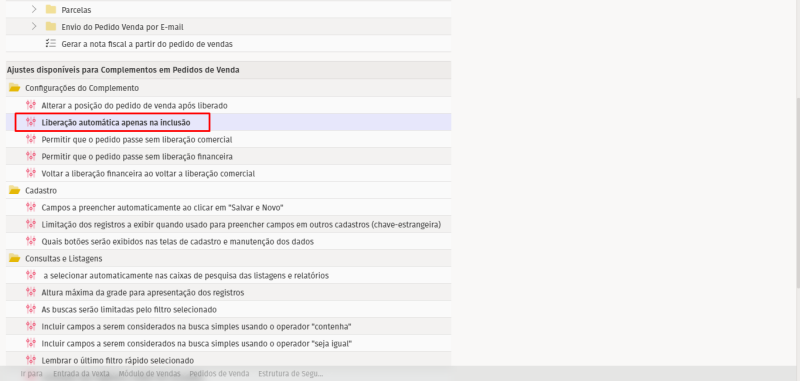 Se você quiser que os Pedidos de Venda sejam liberados automáticamente apenas quando estiverem sendo incluídos, a diretiva deve ser marcada como "SIM".