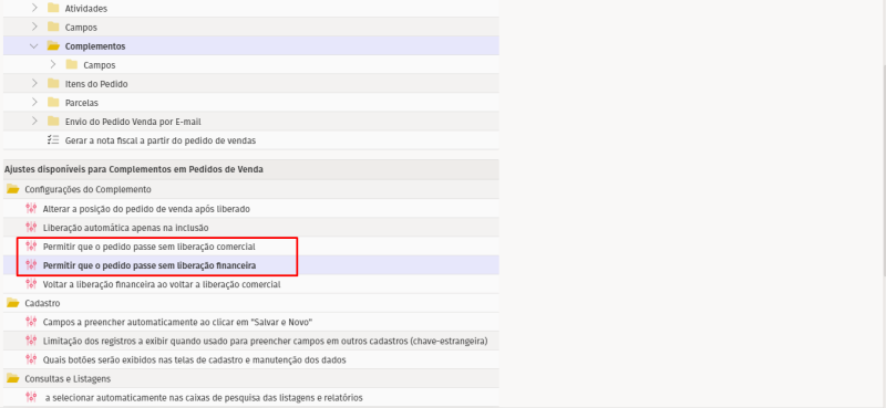 Para acessá-la, abra o módulo de vendas no sistema e localize a opção "Pedidos de Venda". Dentro dessa opção, clique nas "Diretivas". Em seguida, procure pela opção de "Complementos" e selecione-a.