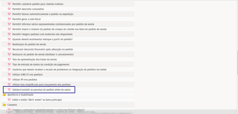 2. Retornar erro na tela de liberação de pedido de venda, obrigando ajuste no valor das parcelas