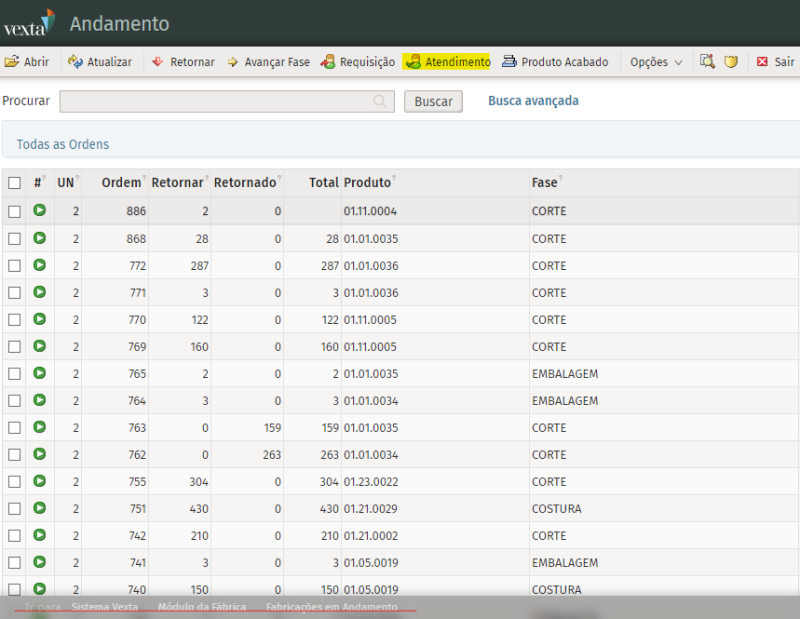 Para liberar o botão Atendimento, acima destacado, é necessário habilitar a diretiva:
