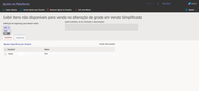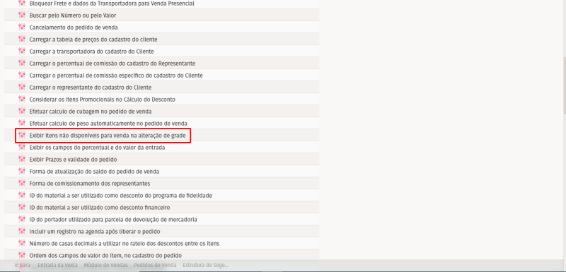 Se você optar por exibir os itens não disponíveis para venda na alteração de grade. A diretiva deve ser marcada como "SIM".