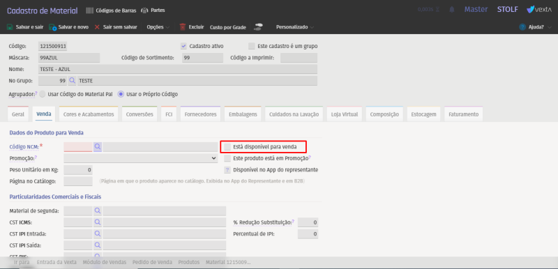 Se não deseja visualizar os itens não disponíveis para venda. A diretiva deve ser marcada como "NÃO".