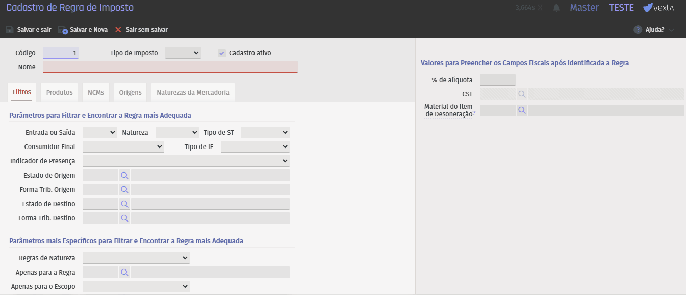Flag "Considerar ICMS Difal na base de cálculo" na regra imposto