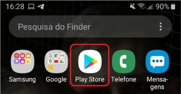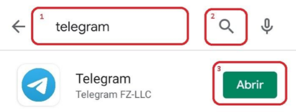 2. Clique na lupa, escreva “Telegram” e pesquisa. Depois baixe e mande abrir o app:
