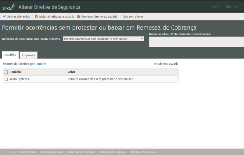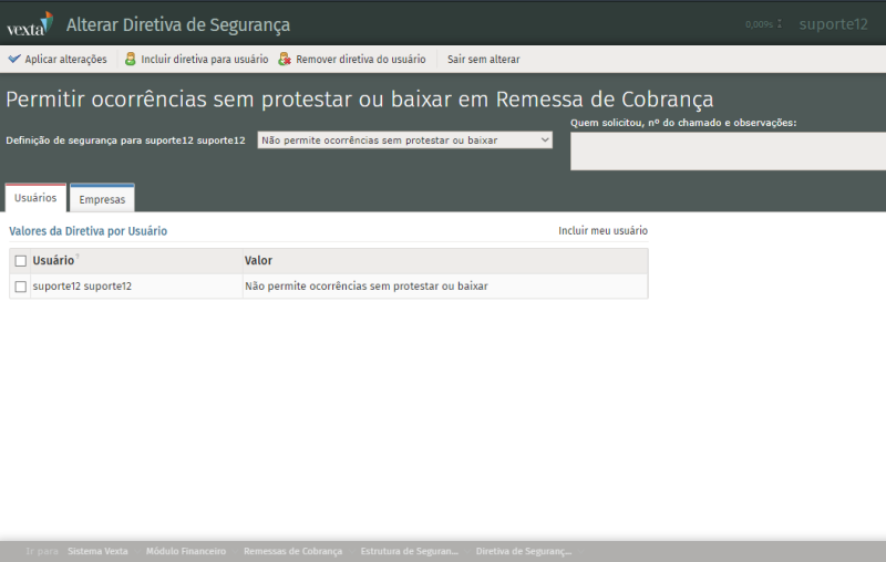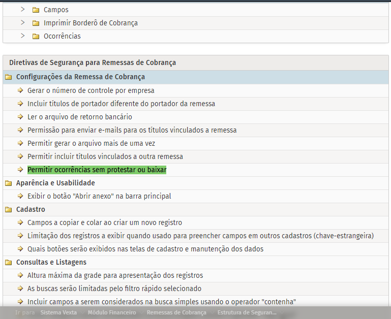 Criada, na tela de Remessas de Cobrança, a diretiva "Permitir ocorrências sem protestar ou baixar", para permitir cadastrar títulos em remessas sem a necessidade de marcar para protestar ou baixar. Lembrando que deve ser usada com cautela, pois a maioria dos bancos exige que seja marcada uma das duas opções.