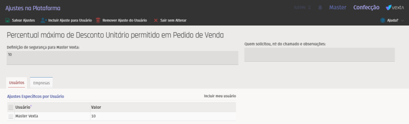 Já existe uma diretiva para o "Percentual máximo para o desconto financeiro" e foi incluída nova diretiva para o "Percentual máximo para o Desconto Unitário". O valor percentual "default" é 10 para ambas. Inclua um percentual máximo para o Desconto Unitário e altere um pedido de vendas e verifique se respeita o percentual máximo incluído, ao clicar na calculadora VERDE (que irá calcular o desconto apenas para os itens que ainda não possuem desconto, e não estão em promoção), ao clicar na calculadora VERMELHA (para incluir ou alterar o desconto para todos os itens que não estão em promoção) (NOTE: se já existe um desconto unitário e alterar o percentual e clicar na calculadora VERMELHA, o sistema exclui o desconto anterior e inclui o novo desconto), ou após alterar o %desconto diretamente no item do pedido. Nestas 3 situações, deverá verificar o percentual máximo incluído na diretiva. Se for superior, irá emitir mensagem e não permitirá salvar. (obs: os valores de desconto não irão aparecer para itens de frete,seguro,outras despesas e produtos em promoção (se a diretiva estiver configurada para "não" considerar itens promocionais no cálculo do desconto).
