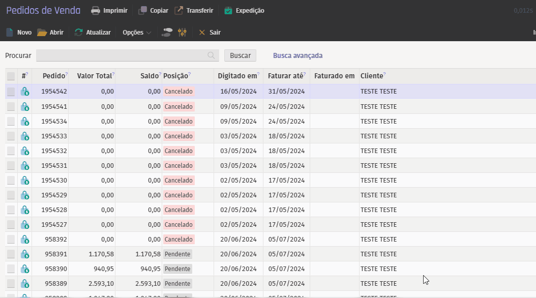 - Se a Diretiva Estiver Marcada como "Não": Ao clicar para cancelar um Pedido de Venda, o sistema cancelará o pedido imediatamente, sem exibir uma tela adicional, mantendo o comportamento anterior.