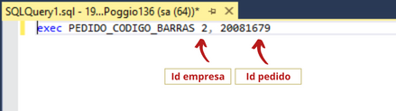 Comando: EXEC PEDIDO_CODIGO_BARRAS "ID DA EMPRESA", "ID DO PEDIDO"