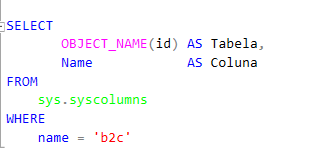 Como saber quais das tabelas do banco de dados possuem determinado campo. Neste exemplo queremos achar a tabela que possui o campo "b2c"
