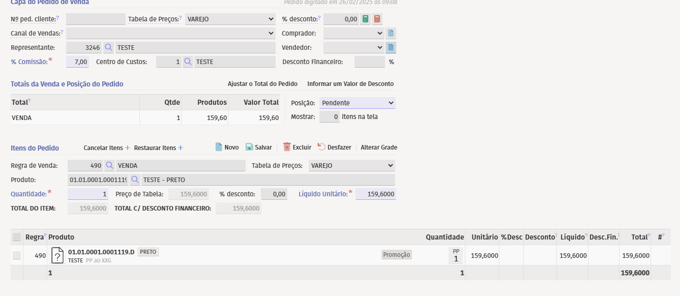 Agora, o grid "Totais da Venda e Posição do Pedido" mostra com mais clareza as diferentes regras do pedido.