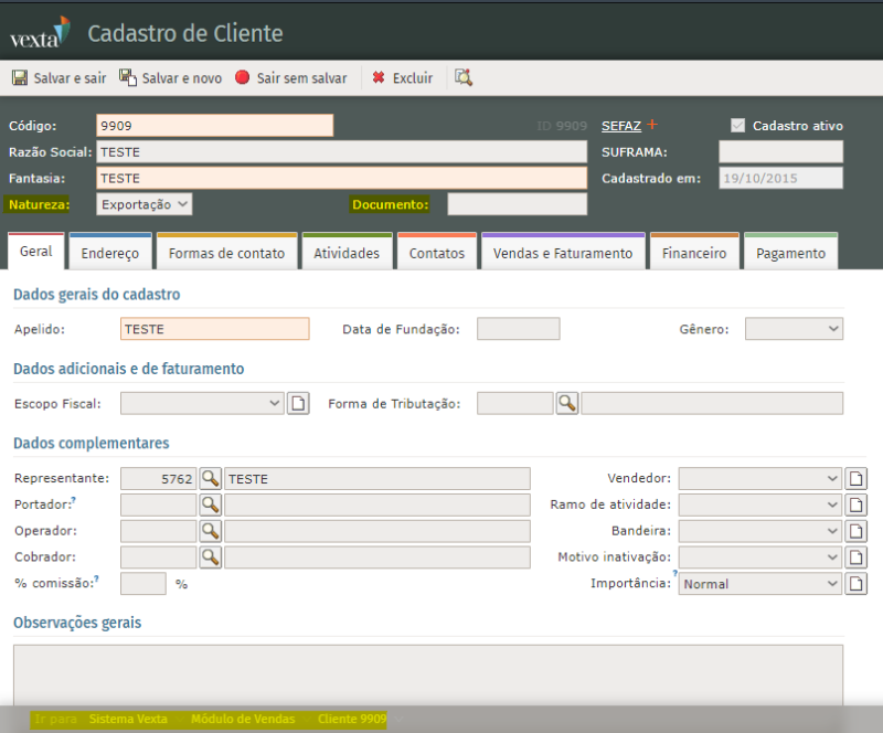 - Ajustado o cadastro de clientes para não validar o documento quando a natureza for exportação.