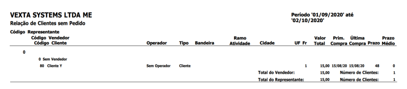 Com o relatório de Relação de Clientes sem Pedido, você poderá acompanhar quem comprou com você no último ano por exemplo, mas deixou de comprar nos últimos meses conforme é demonstrado na tela do sistema apresentada acima. E por resultado você teria o seguinte relatório:
